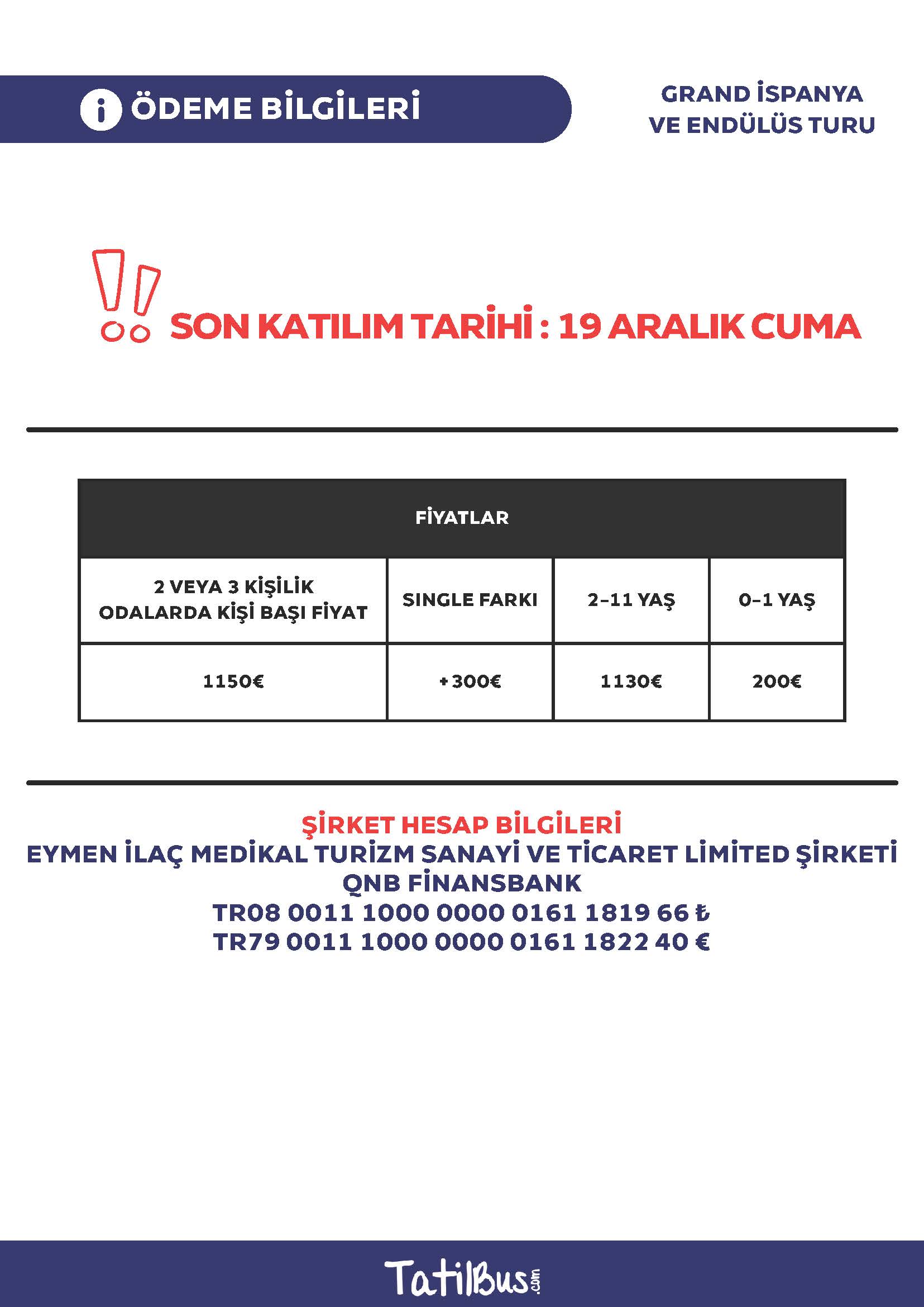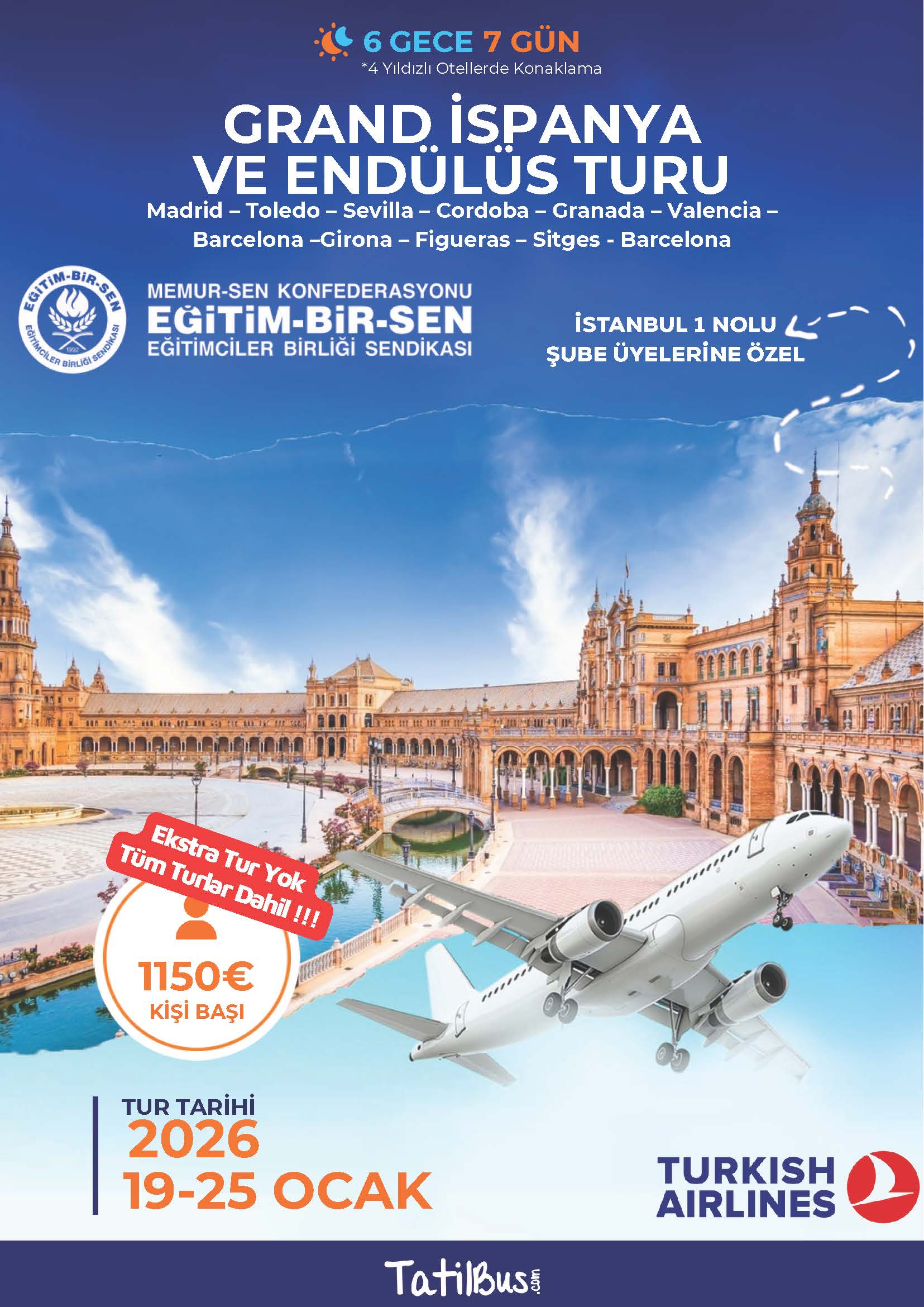 Üyelerimize Özel Büyük İspanya ve Endülüs Turu Son Katılım: 19 Aralık Cuma